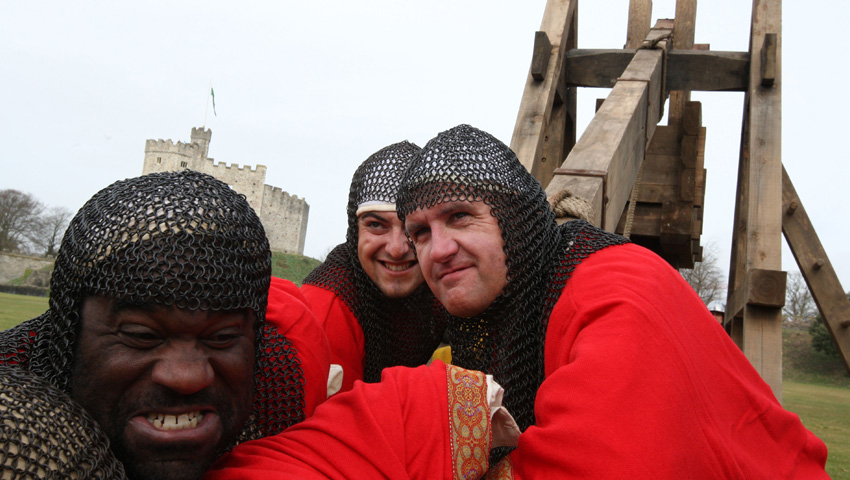 Saif y Trébuchet mewn lleoliad allweddol ar Lawnt y Castell, ac fe’i hadeiladwyd gan seiri a gwneuthurwyr setiau proffesiynol a fu’n gweithio ar y ffilm Hollywood Ironclad (Runnymeade Productions). Mae Paul Giamatti, James Purefoy, Brian Cox, Mackenzie Crook, James Flemyng, Derek Jacobi a Kate Mara yn ymddangos yn y ffilm, sy’n cofnodi gwarchae fawr Castell Rochester ym 1215, pan amddiffynnodd grŵp o Farwniaid gwrthryfelgar un o geyrydd pwysicaf a mwyaf strategol Prydain yn erbyn y Brenin John, a oedd yn benderfynol o adennill ei rym ar ôl llofnodi’r Magna Carta.