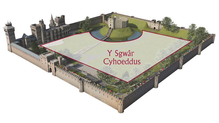 MWYNHEWCH Y SGWÂR CYHOEDDUS YNG NGHASTELL CAERDYDD