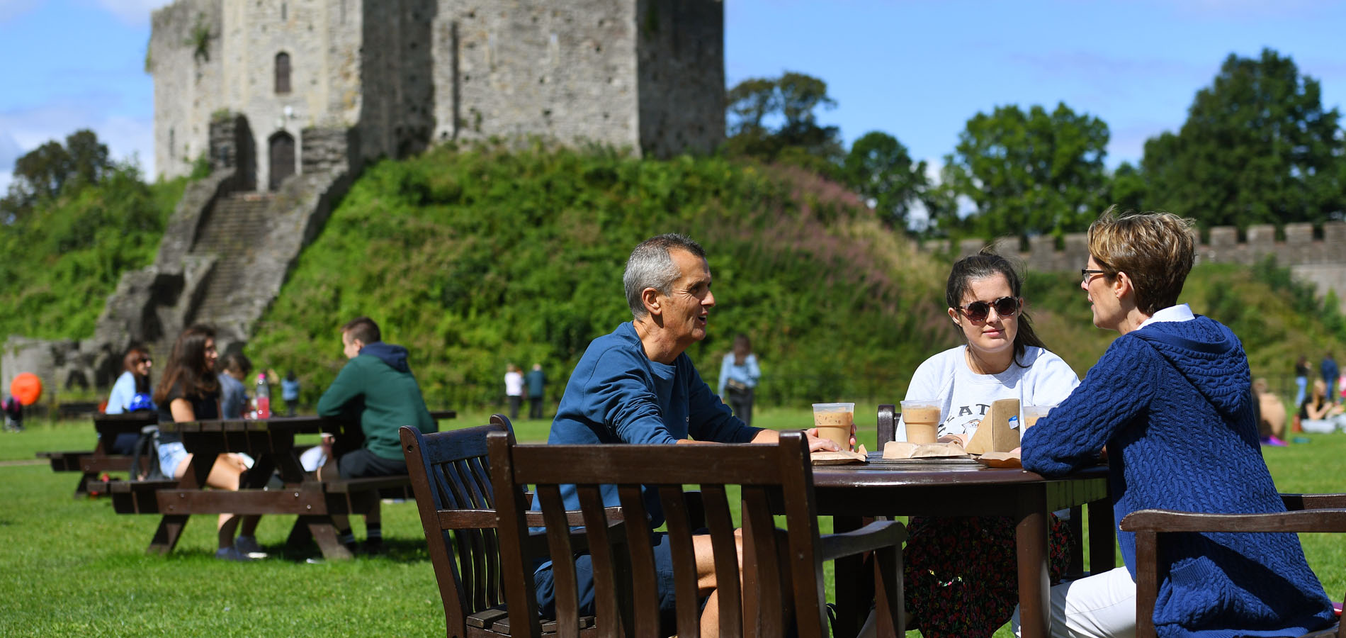 Wedi’i leoli ar deras eang y Castell, mae gan y llecyn hwn yr olygfa orau yng Nghaerdydd! Ymlaciwch yn yr ardal eistedd awyr agored dan do a mwynhau golygfeydd godidog y Gorthwr Normanaidd a thir y Castell. Dewiswch o amrywiaeth o ddiodydd poeth ac oer a diodydd alcoholig, neu trin eich hun i rai melysion blasus.