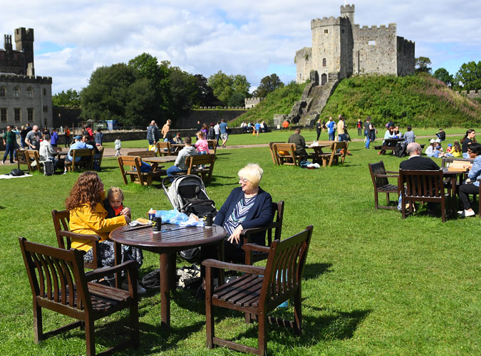 Os ydych chi’n cynllunio taith i Gaerdydd ac eisiau llecyn hyfryd i ddal i fyny gyda ffrindiau neu ymlacio ar ôl cyrraedd y siopau, yna dewch i ddefnyddio’r sgwâr cyhoeddus yn lleoliad hyfryd lawnt allanol y Castell.