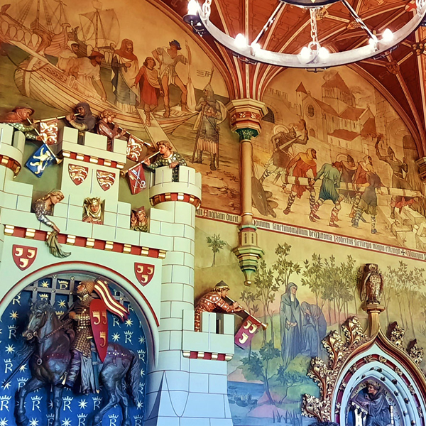 Wedi’i greu gan y drydydd Ardalydd Bute mewn cydweithrediad â’r pensaer, William Burges, ychydig o gost a arbedwyd wrth drawsnewid y Castell yn Camelot Fictoraidd Cymreig.