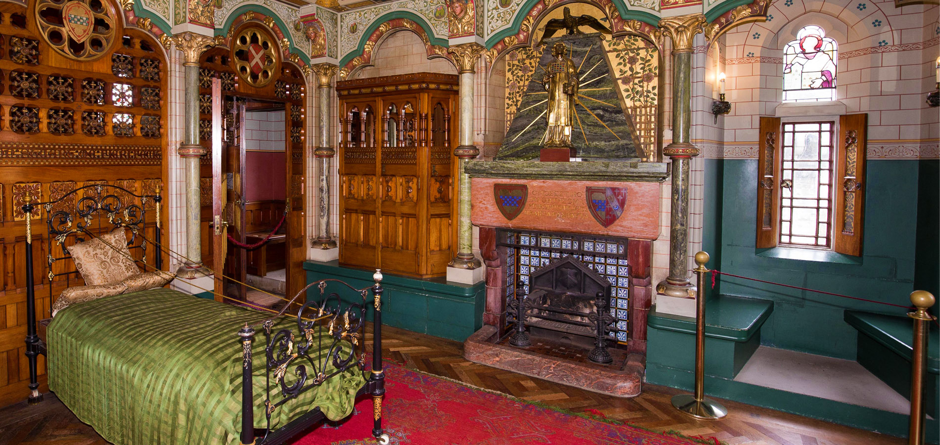 Cymerwch olwg rithwir o amgylch Ystafell Wely'r Arglwydd Bute yng Nghastell Caerdydd.